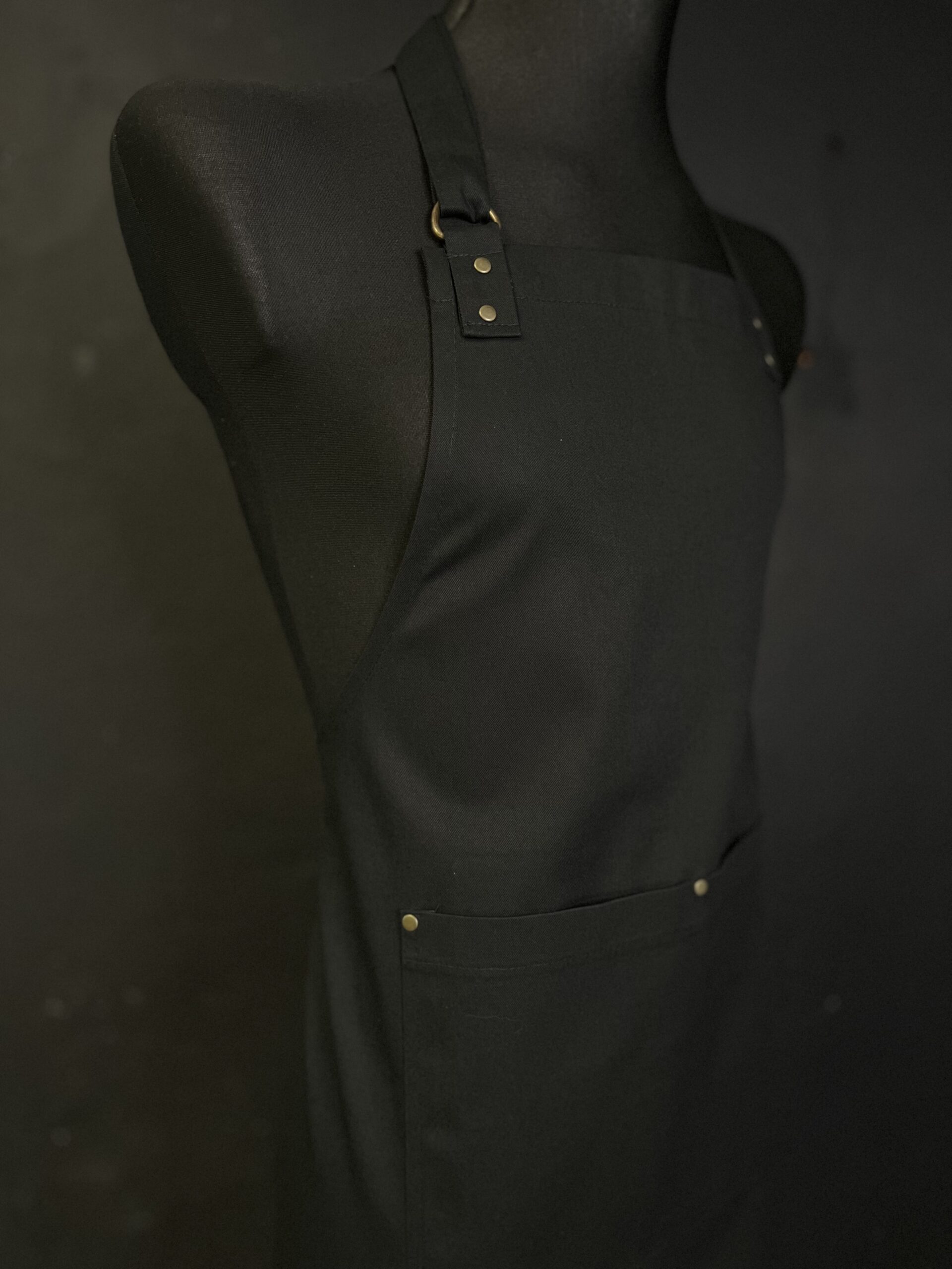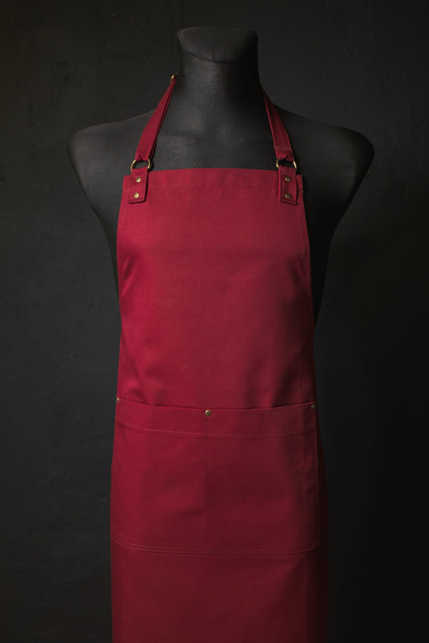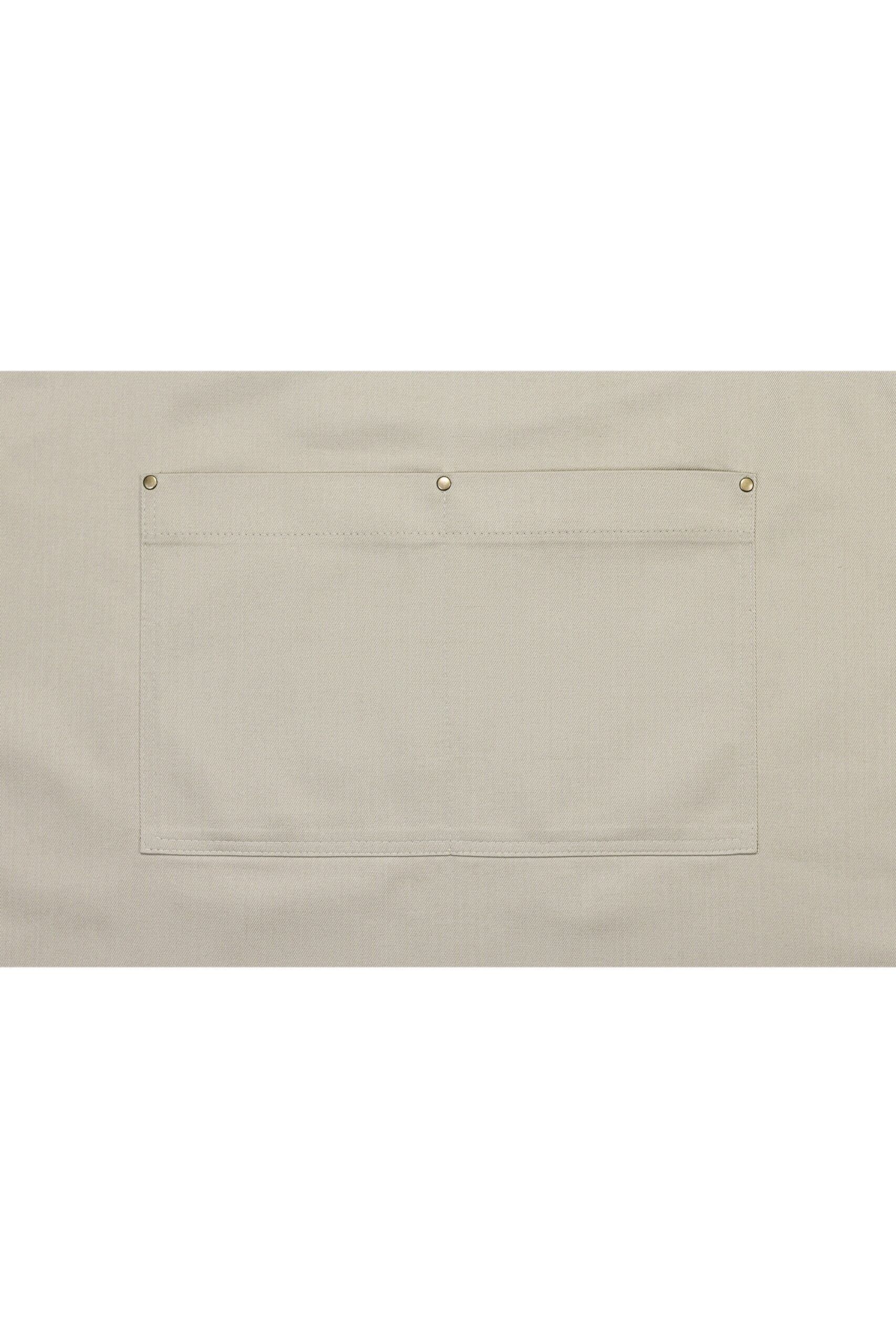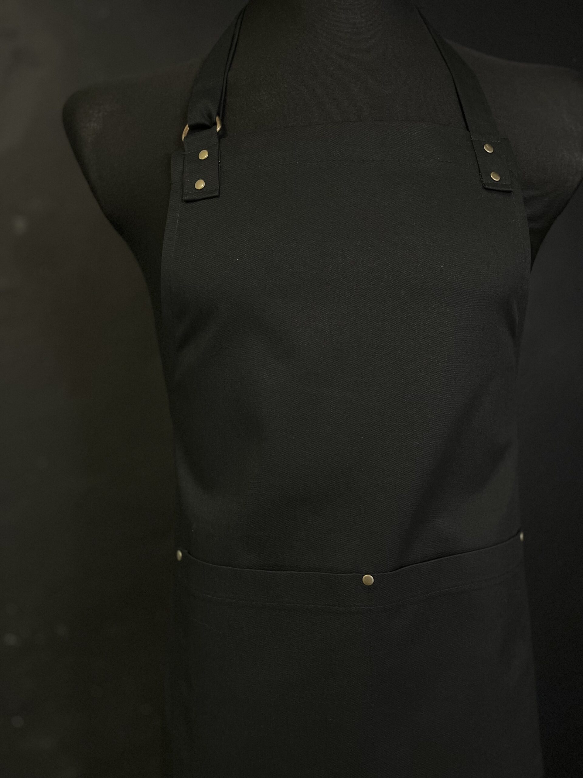 Prosty minimalistyczny fartuch. Praktyczna podwójna kieszeń wzmocniona nitami.  Pasek z regulacją na szyi. Fartuch idealny dla każdego. Może się sprawdzić jako fartuch barmański,  fartuch florystyczny lub fartuch kuchenny.
