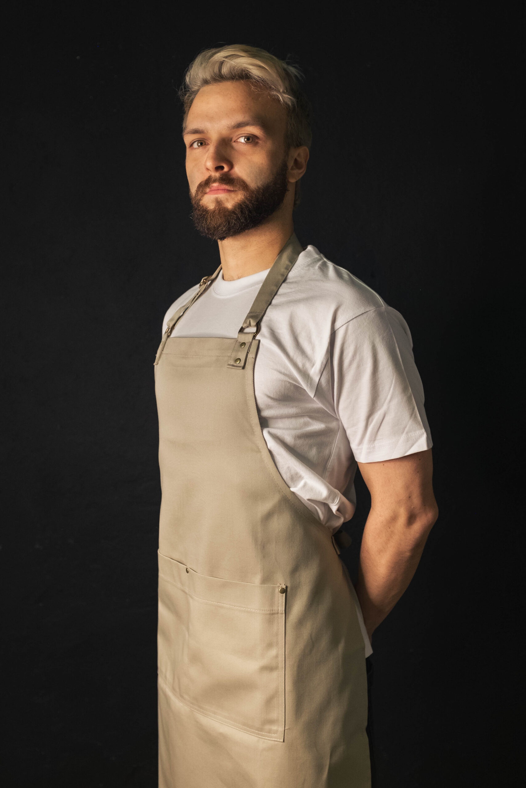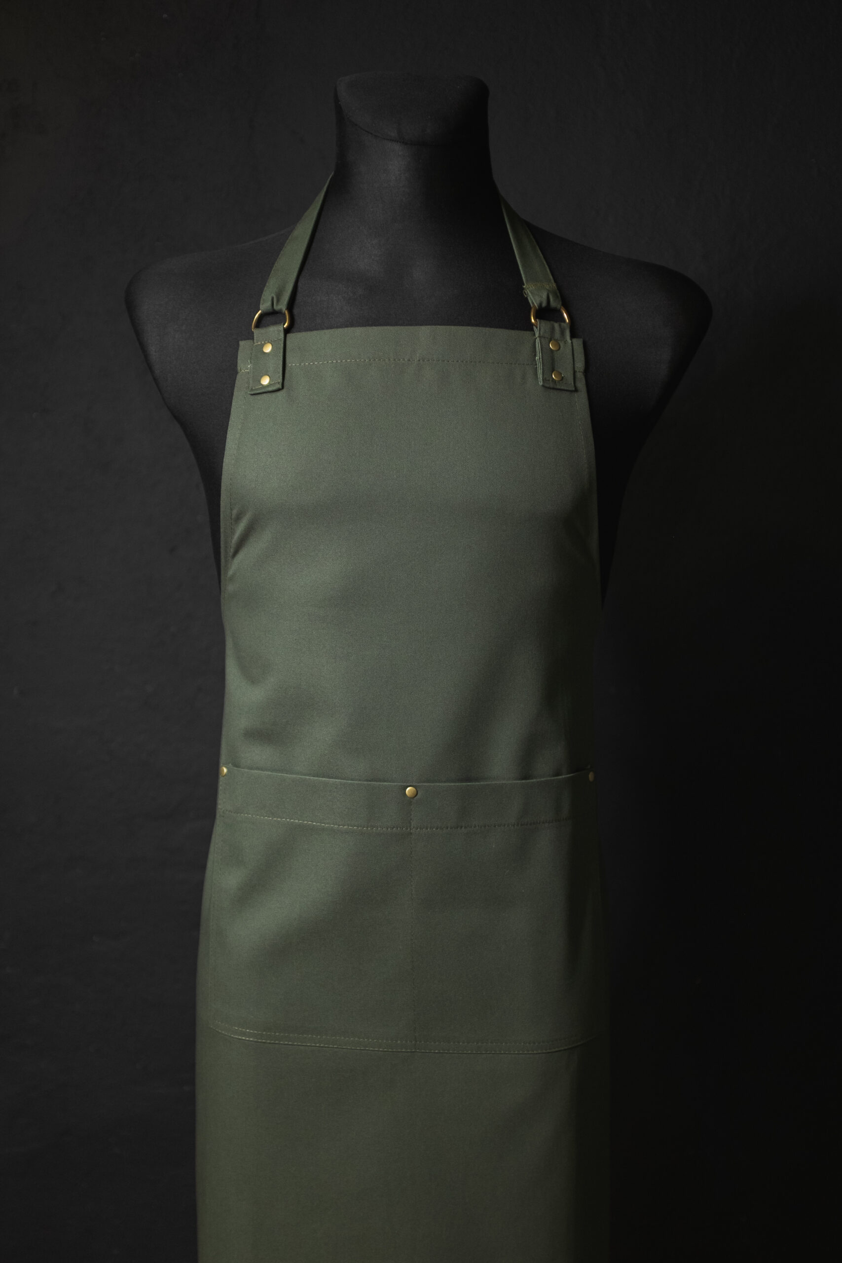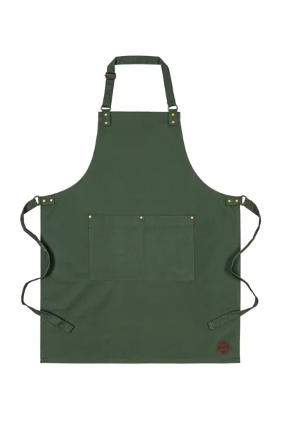 Przepiękny, klasyczny, minimalistyczny fartuch. Praktyczna podwójna kieszeń wzmocniona nitami. Pasek z regulacją na szyi. Fartuch idealny dla każdego. Może się sprawdzić jako fartuch barmański, fartuch florystyczny lub fartuch kuchenny. Piękno kryje się w prostocie.
